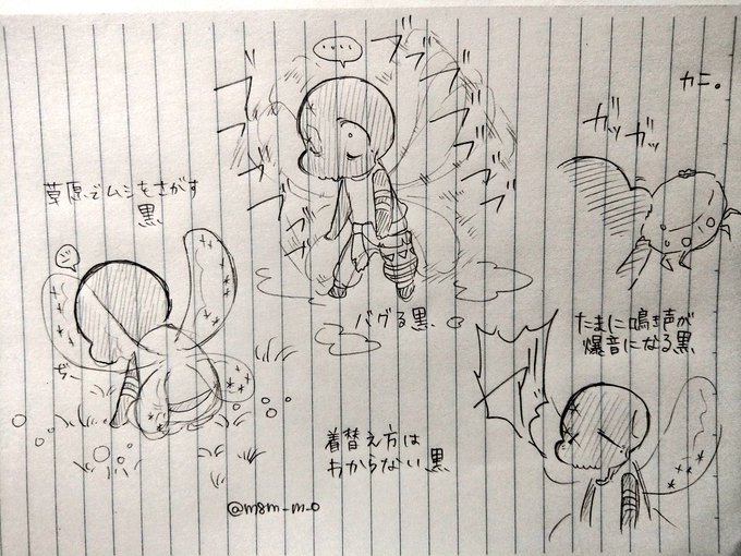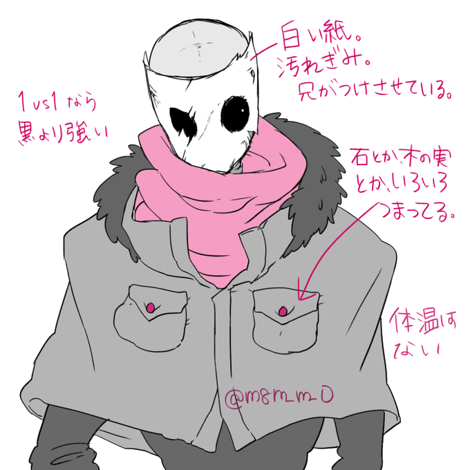 小説続き描こうか悩んで落書き開始するやつ! 紙は釘で付いているヨ!はがそうとすると無言だが止めてくるよ。兄から絶対剥がすなと言われてる。 あの小説のあの白い部屋はバグの通り道の中に彼が兄の設計図通り作った部屋だよ。あの空間自体がバグの中なのでマグマもないし使わないときは消えるよ☆ twitter.com/m8m_m_o/status…