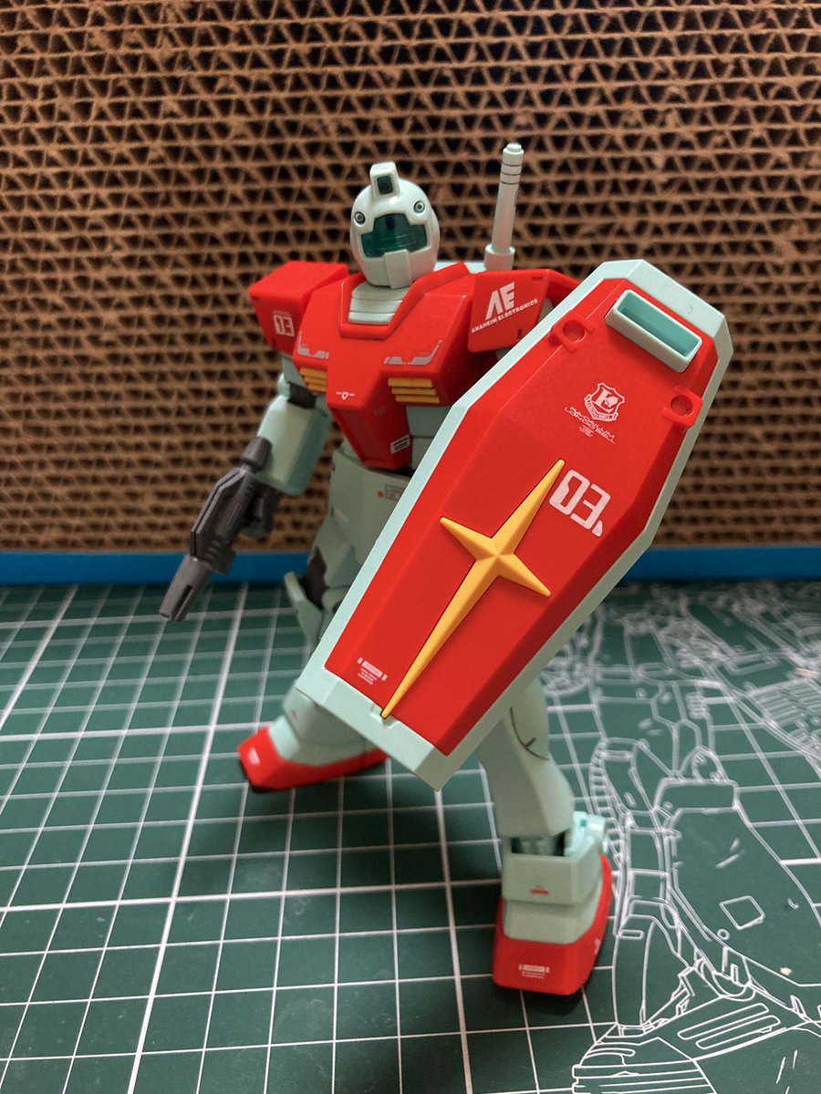 HG 1/144 RX-79GM 土日で作ったけど、簡単に作れて楽しい! けど、やっぱり継ぎ目消しが甘い。。 #ガンプラ #ガンプラ好きとつながりたい #ガンプラの画像貼るとRTされると聞いて #ガンプラ初心者
