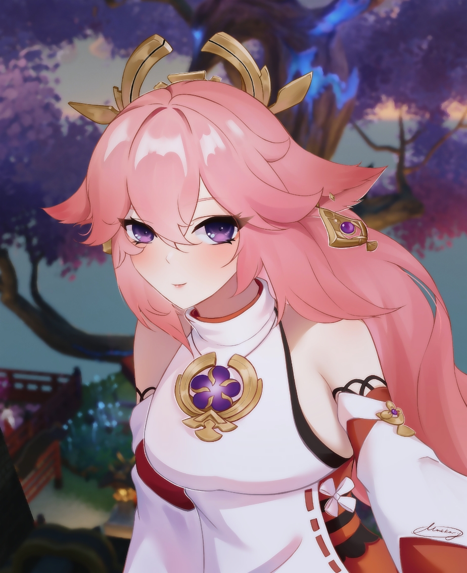 Yae Miko Луна сегодня просто великолепна. Нельзя упускать такой момент. Давай прогуляемся вместе при лунном свете. Отказ не принимается. #Yaemiko #Inazuma #anime #digitalarts #GenshinImpact #genshinimpactfanart