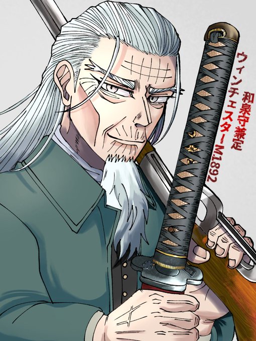 和泉守兼定とウィンチェスターM1892(土方歳三) カッコ良すぎるんよ、このイケジジ。 #ゴールデンカムイ #イラスト