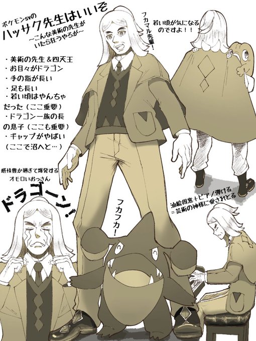 ハッサク先生に狂わされた一人の感想です…(セビエ・フカマル先輩もいます) ゲ○フリは、我々をどうしたいんだ…! #ポケモンSV #イラスト