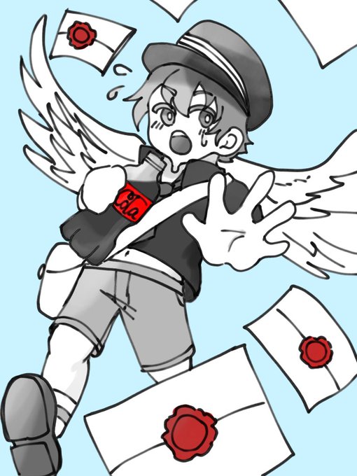 1 9 とあるサークルで描いた、オリジナルイラストです〜 (天使、コーラ、郵便屋) #イラスト 23/04/25 20:05