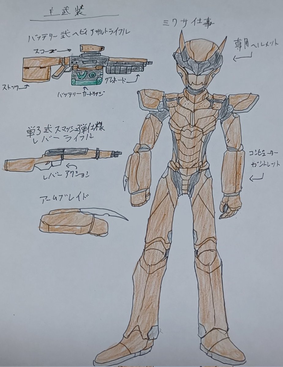 #創作 #イラスト トゥループアレス リブト軍の強化棒人間により肉体改造を受けた棒人間に専用アーマーを着けた姿 オディオンワールドには約2000の大団 がありミクサのタスクレンジャーもその一部
