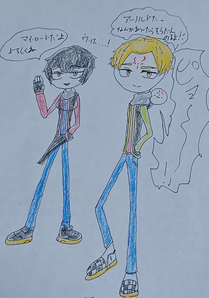 #創作 #イラスト 新しく入った新人に挨拶する二人?