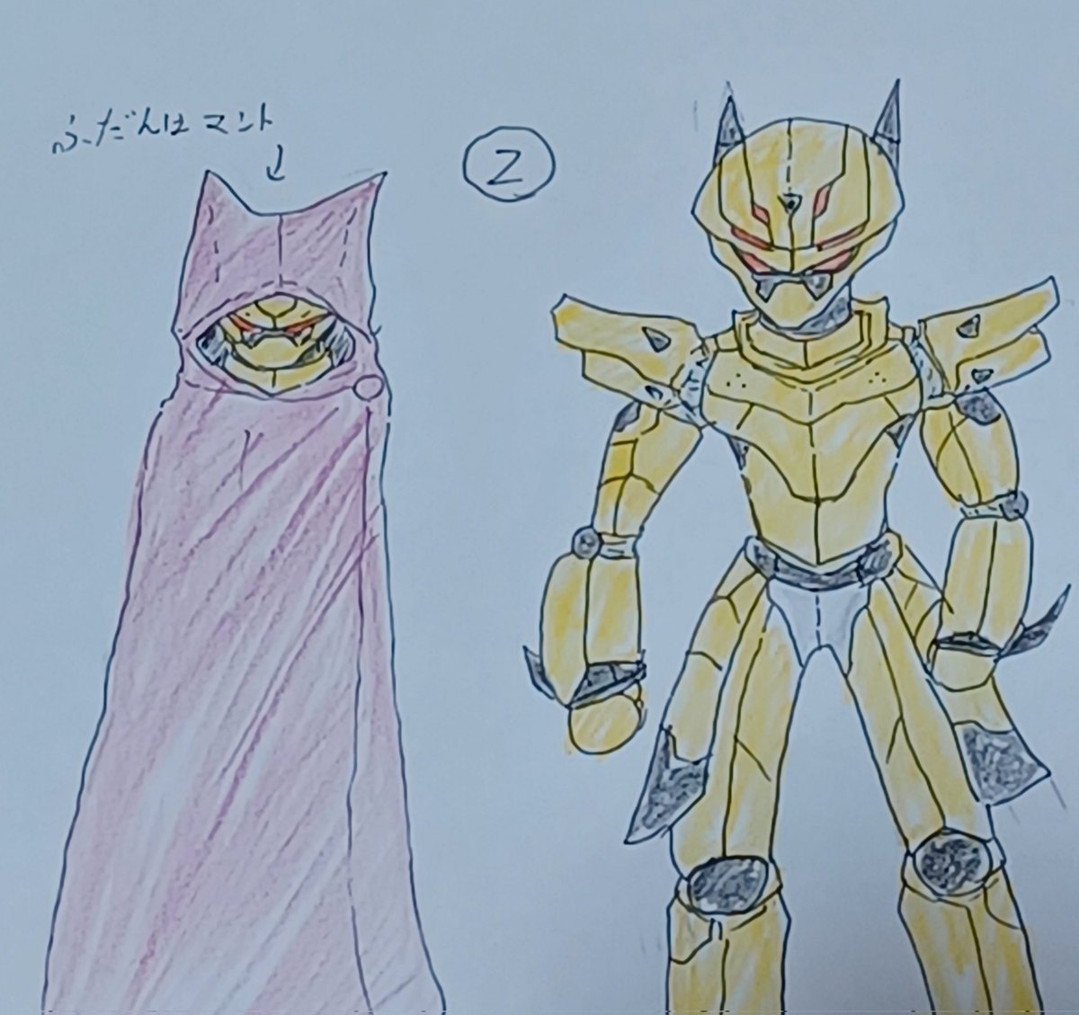 #創作 #イラスト サイクロンオーガ ゼロホーグ ミクサをベースに作られたクローン しなやかな動きと多彩な技を持つ ミクサとは敵対したが説得により 兵器と言う呪縛からとかれた