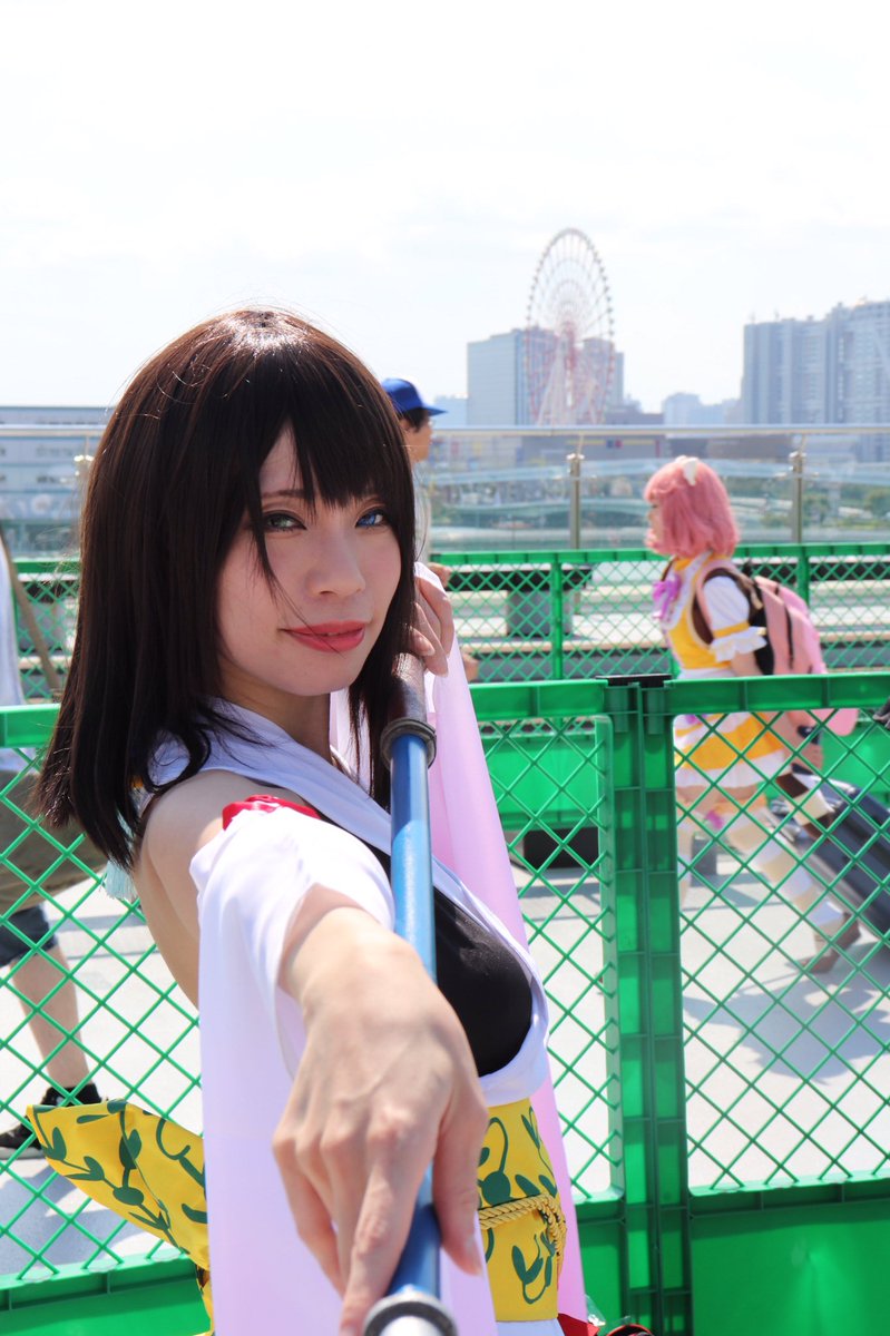 2 3 FF10のユウナ (@shion_takamura 様) 後ろの観覧車を上手く使えないかなと思ったけど自分のクソザコ技術ではなんともできず申し訳ない🙏 #C96コスプレ 19/08/10 21:49
