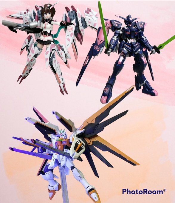 #今月作ったプラモ晒そうぜ ハイネ専用フリーダム 金潟すぐみ桜ver. ガンダムバエル夜桜 今回は自分らしく、好みの色に塗装する楽しさが改めてわかりました🌸 来月も桜シリーズなど色々挑戦して行きたいと思います✨