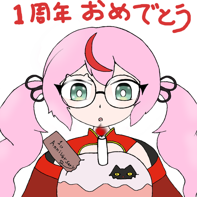 #あみゃーと りんごちゃん1周年おめでとうございます 1周年おめでとう絵を描きましたー