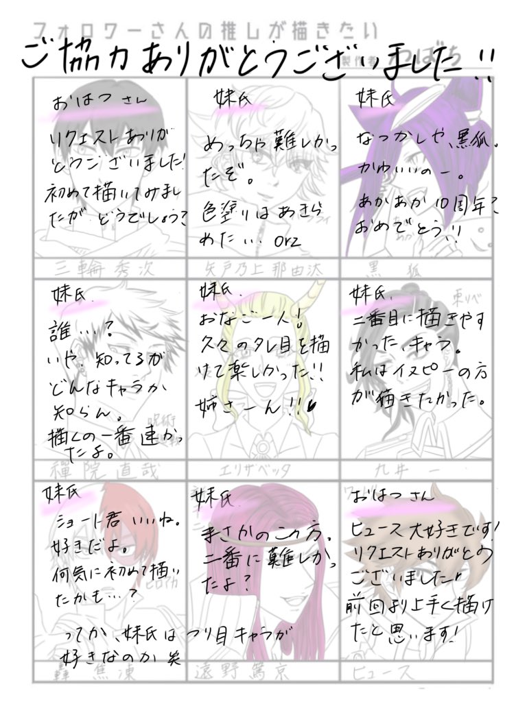 @skri_nmkw @remiminowato @tarutarunoriben お待たせしました!フォロワー推しキャラが出来ました。めちゃくちゃ楽しかったです!これからも精進していきますので、気軽にリクエストして下さい!! #フォロワーさんの推しが描きたい