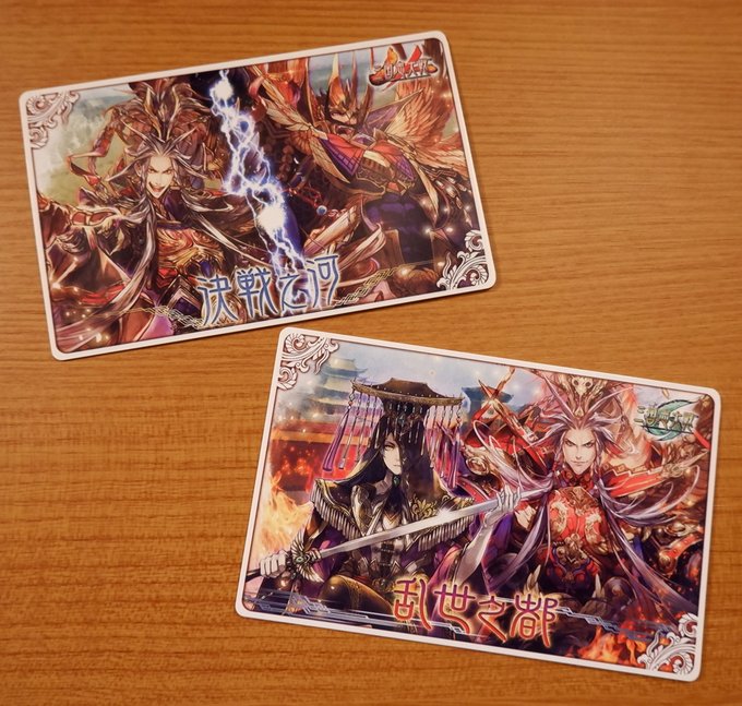 サンプルカードもいただきました☺️ ちっちゃくてよく見えないのですが、今回僭越ながら背景に孫権様(+砂に埋もれる軍師さん)も描かせていただけまして、とっても嬉しかったです!