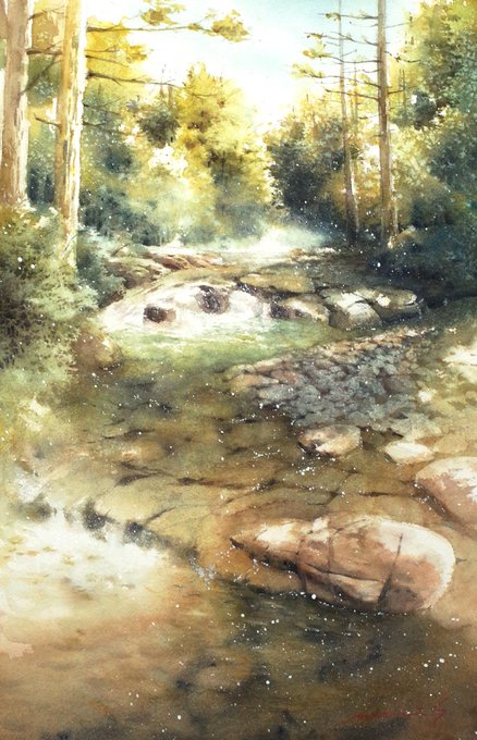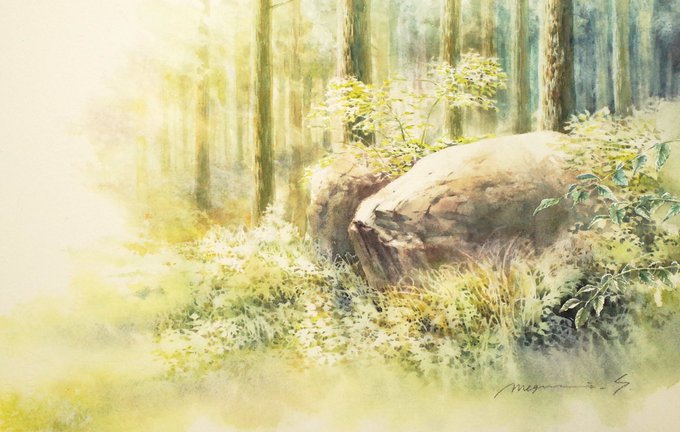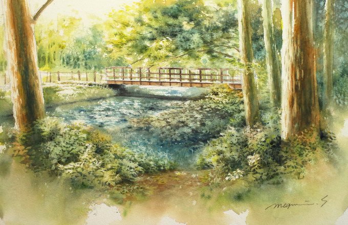 季節の進む速度が早すぎて絵が追いつかない… 一日が48時間あれば良いのに #赤沢自然休養林 #木曽 #透明水彩 #風景画 #アナログ絵