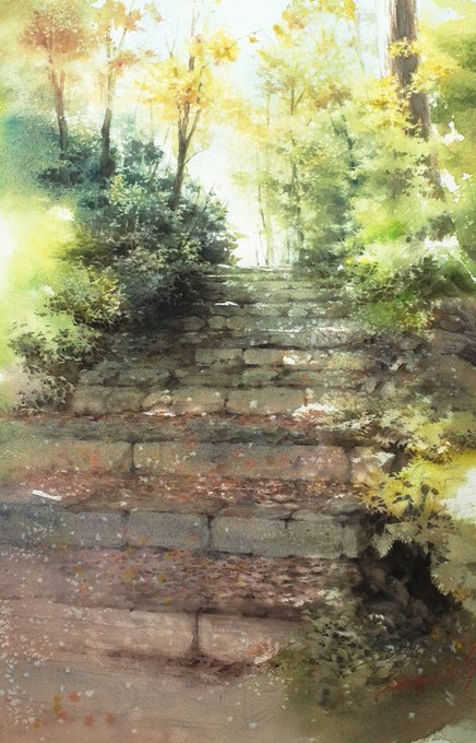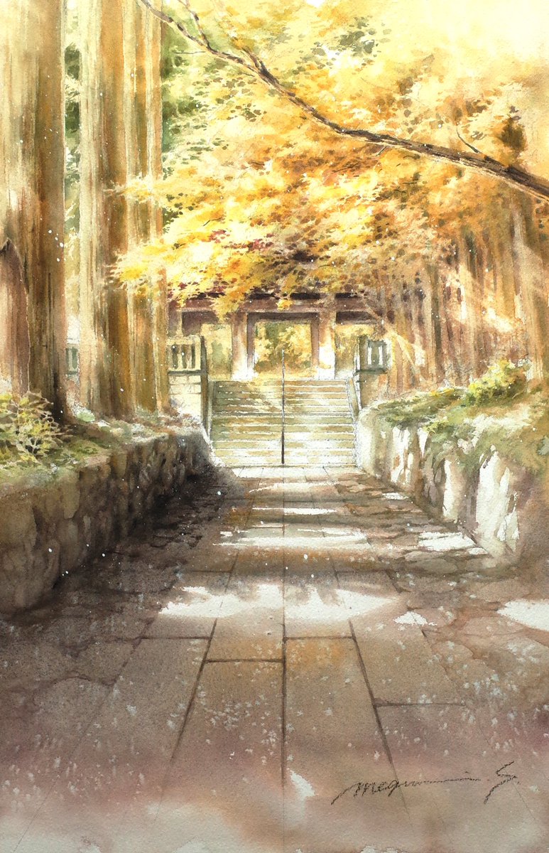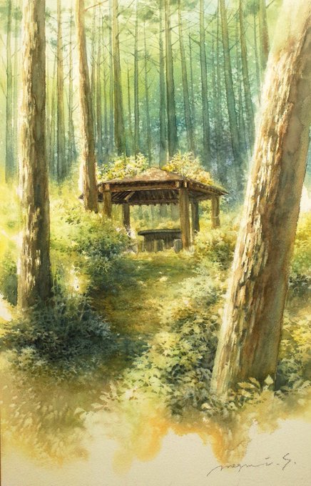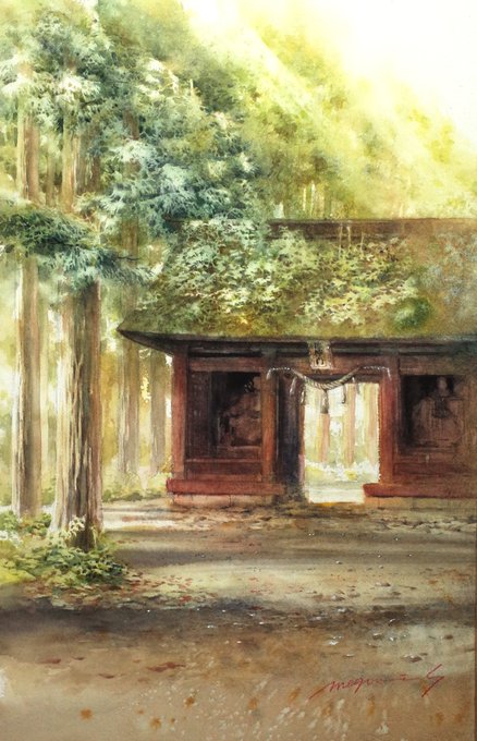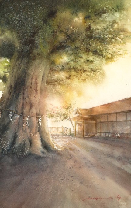 46 512 柔らかな午後。 #アナログ #透明水彩 #春日神社 いつもイーゼルを立てて椅子に座って描いているんですが、気付くと猫背で常に腰痛に悩まされています。 絵描きの皆さま、良い腰痛対策があれば教えてください😭 21/09/23 11:13