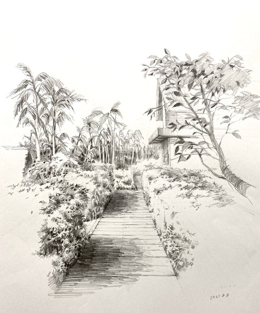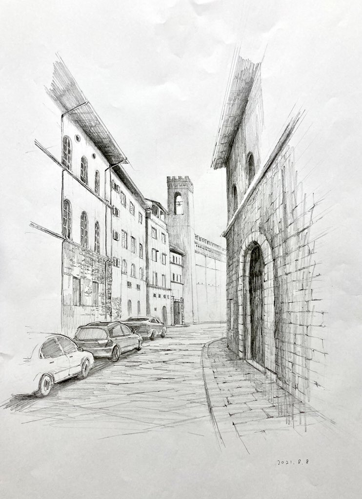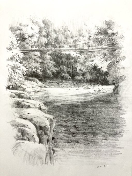 26 383 水彩画勉強のための鉛筆スケッチ。 #鉛筆スケッチ #風景画 21/08/15 01:04