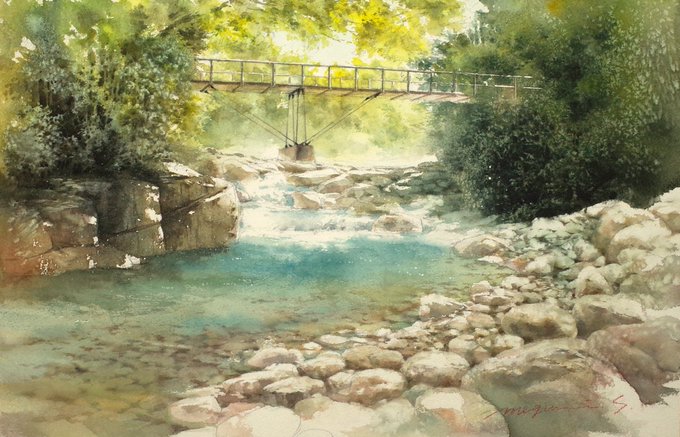 35 350 前に進む あの橋を渡って、もっともっと先へ。 #水彩画 #アナログ 21/10/25 12:04