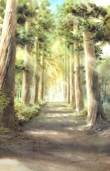 戸隠神社奥社 杉並木。 神聖な美しさに言葉を失った。 この美しい世界、短い人生の中で実際見ることができる景色は限られているけれど、そのひとつひとつを心に刻みながら生きていきたいと思う。 #戸隠神社 #杉並木 #奥社 #透明水彩