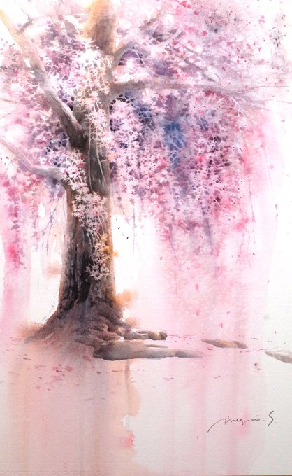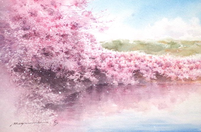 37 457 もう梅雨入りの気配が感じられますが、桜の絵をもう少し。 山梨県舞鶴城公園の桜。 #透明水彩 #桜 22/05/12 18:24