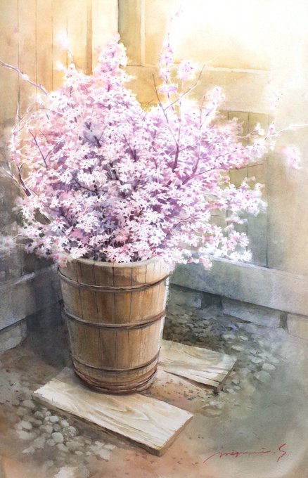 35 529 もう5月も終わりですが、今年最後の桜の絵です。 庭の片隅で凛と輝く様子がとても綺麗でした✨ #透明水彩 22/05/21 09:59