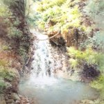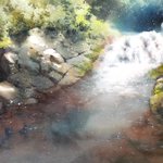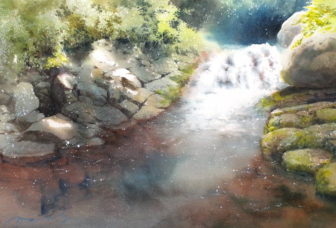 3 66 長野県茅野市 おしどり隠しの滝下流。 赤い岩石が印象的でした。 #アナログ #透明水彩 22/09/03 11:51