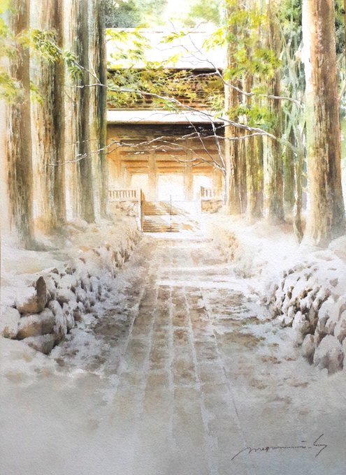38 481 戸隠神社奥社 杉並木。 神聖な美しさに言葉を失った。 この美しい世界、短い人生の中で実際見ることができる景色は限られているけれど、そのひとつひとつを心に刻みながら生きていきたいと思う。 #戸隠神社 #杉並木 #奥社 #透明水彩 21/11/26 17:44