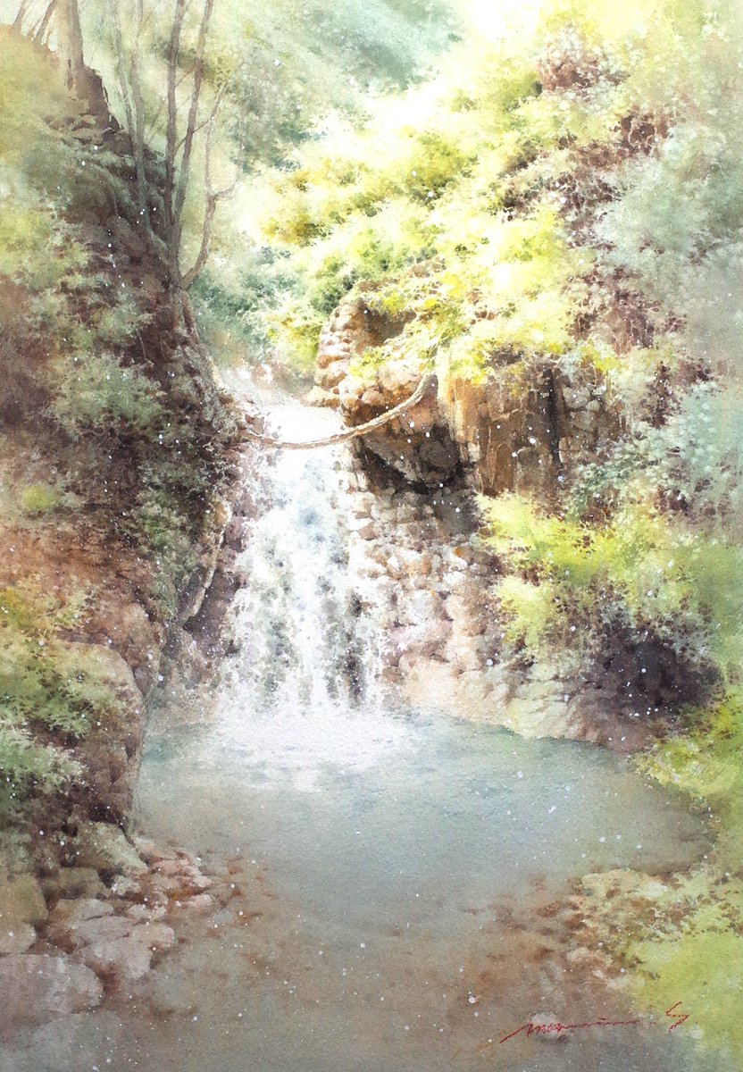 2023.5 / 500×345 / アルシュ荒目 / 透明水彩 長野県飯田市 黄金ヶ滝