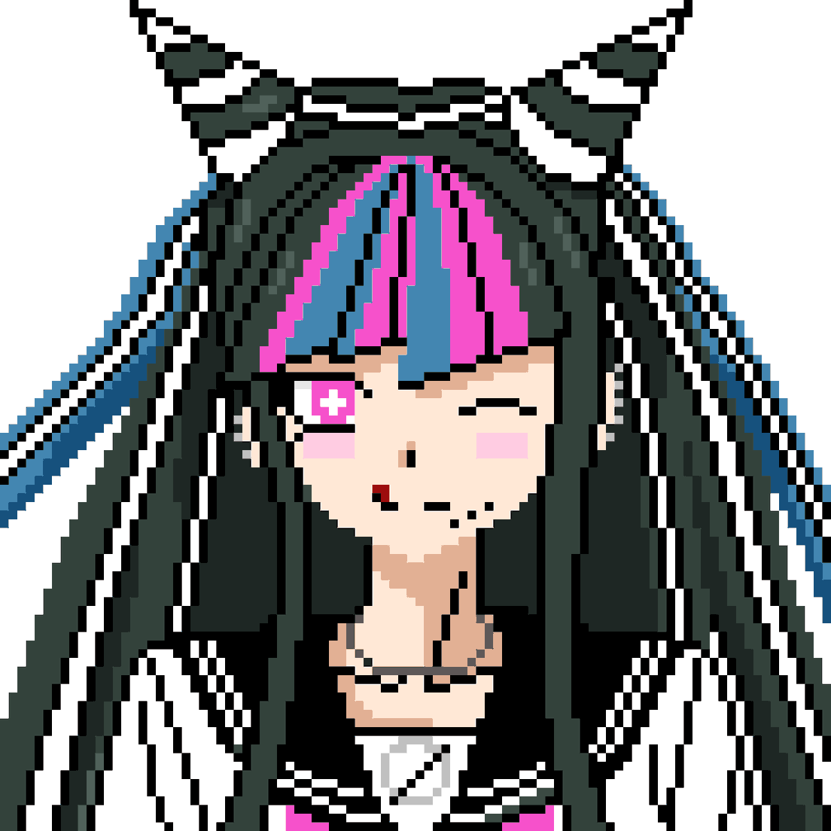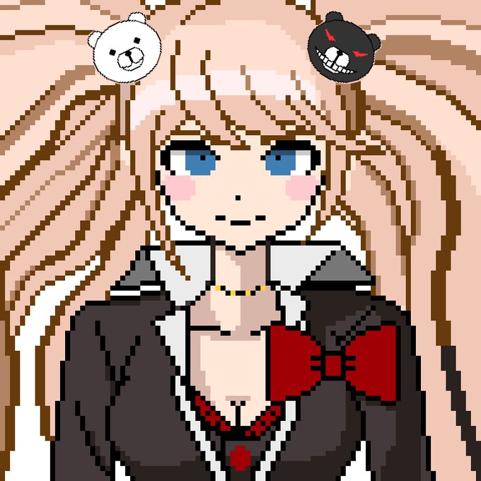 澪田唯吹を作ってみた🎸 (表情編) 以前作ってみたものを色調整・手直し・表情を変えてみた✨ 個人的には(・ω<) の表情の唯吹が、 気に入ってる #澪田唯吹 #スーパーダンガンロンパ2 #ドット絵