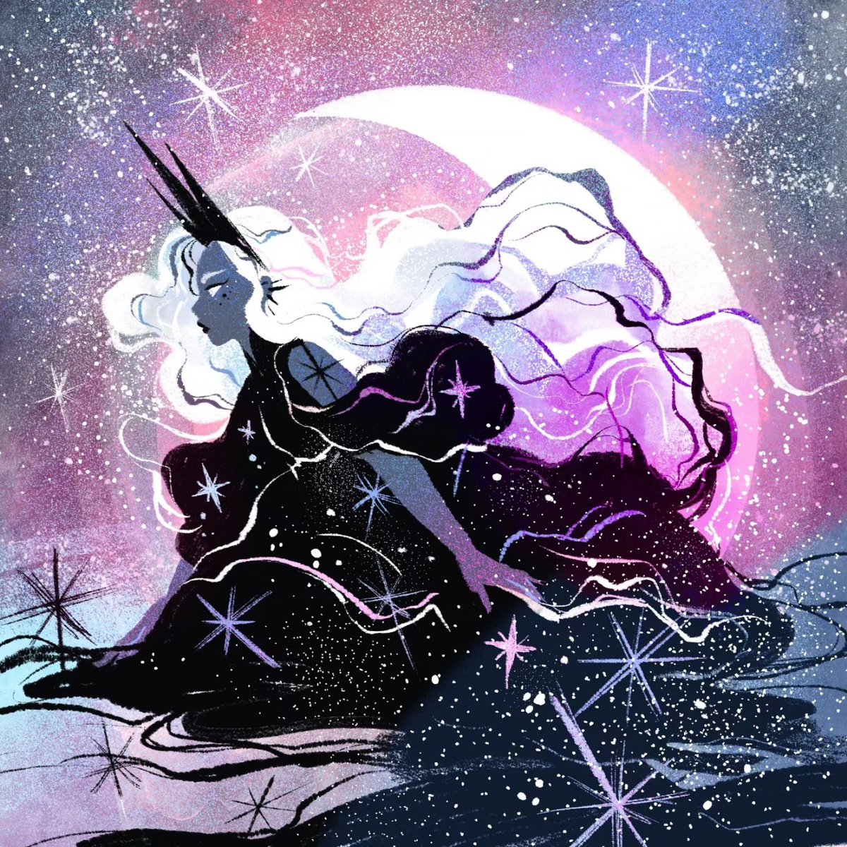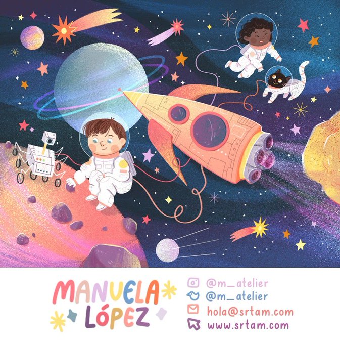 Happy #KidLitArtPostcard day! 🥳 This is my first time joining, I'm M, a Spanish illustrator who truly loves to draw stars and cosmos related scenes ✨🫶 Focused on children's books and open to new projects ✏️🖌️🎨👩🎨 💻 srtam.com 💌 hola@srtam.com