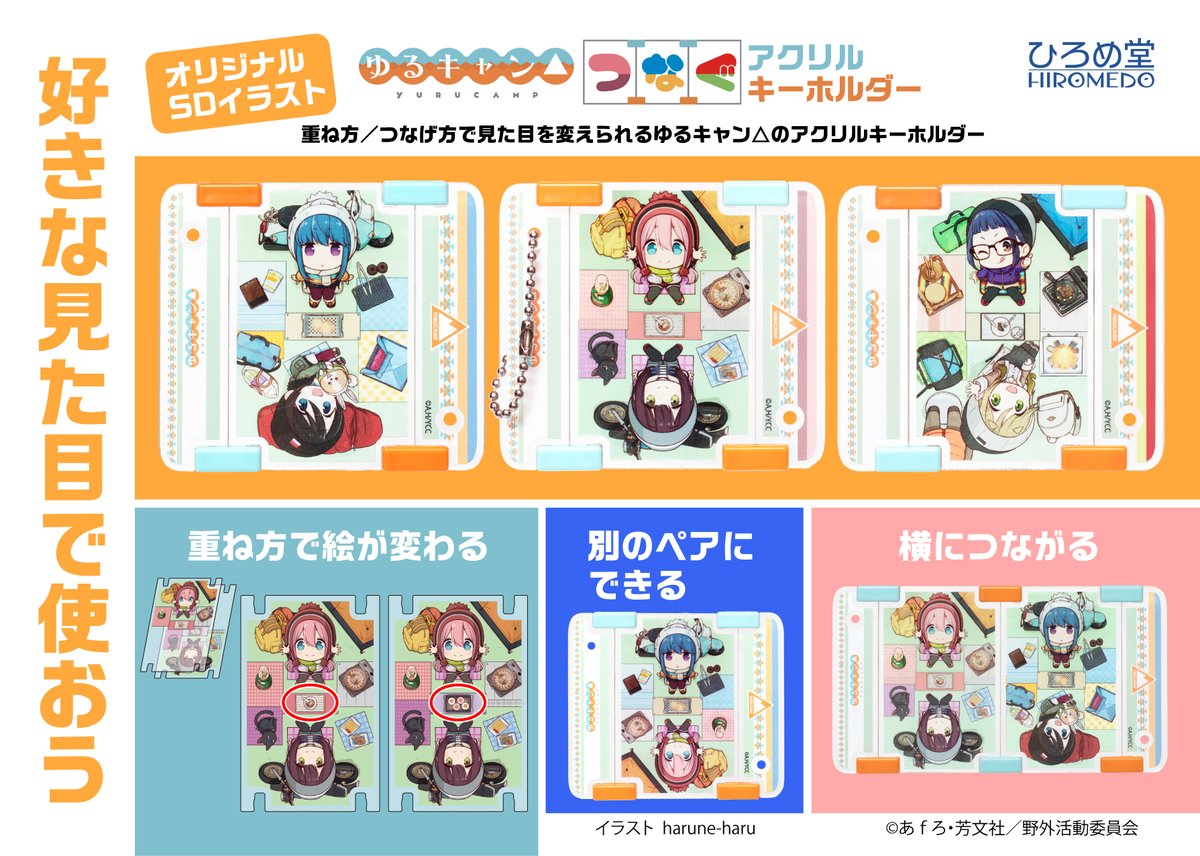 株式会社ひろめ堂さんから発売する ゆるキャン△つなぐアクリルキーホルダーの イラストを描かせていただきました。 予約が開始していますのでよろしくお願いします✨ hiromedo-store.com/products/detai… #ゆるキャン