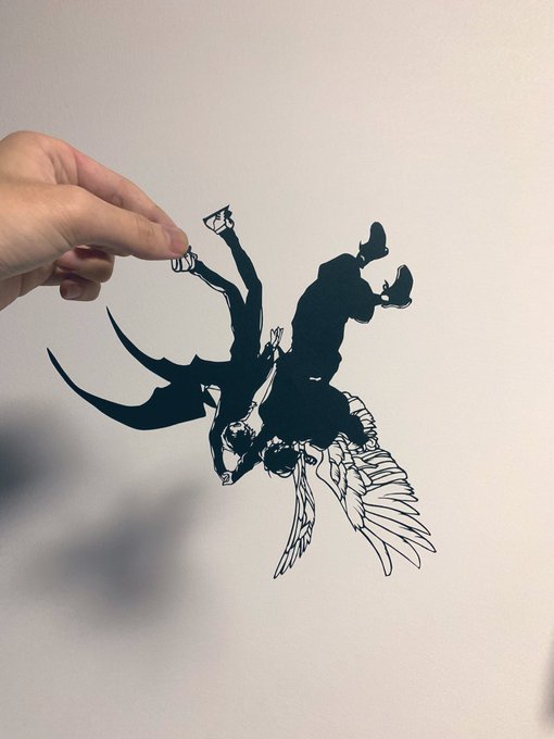 めっちゃ楽しみだぁ! 1枚目の切り絵5時間くらいかかってる笑 #くろのあとりえ #かな絵 #KuzuArt #ChroNoiR #旅の終着点