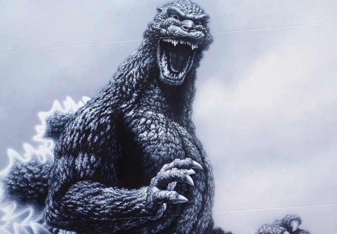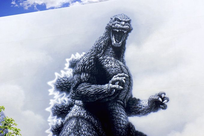 ゴジラ、少し近づいてみました。高画質で見てみてください。 #ゴジラ #壁画 #東宝スタジオ #作者です