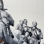 大きな絵も描いてます。巨大壁画。(赤&ピンクの作者が極小…) #七人の侍 #壁画 #東宝スタジオ