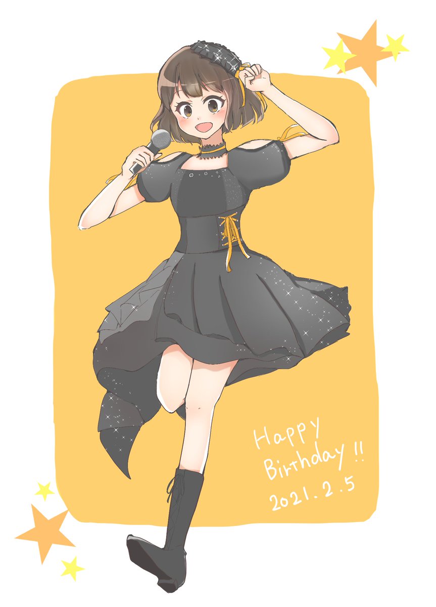 かれんちゃんおめでとうー✨ ライブでマイク持って歌うのも好きだ~!と思った絵です! #愛城華恋誕生祭2021 #愛城華恋生誕祭2021
