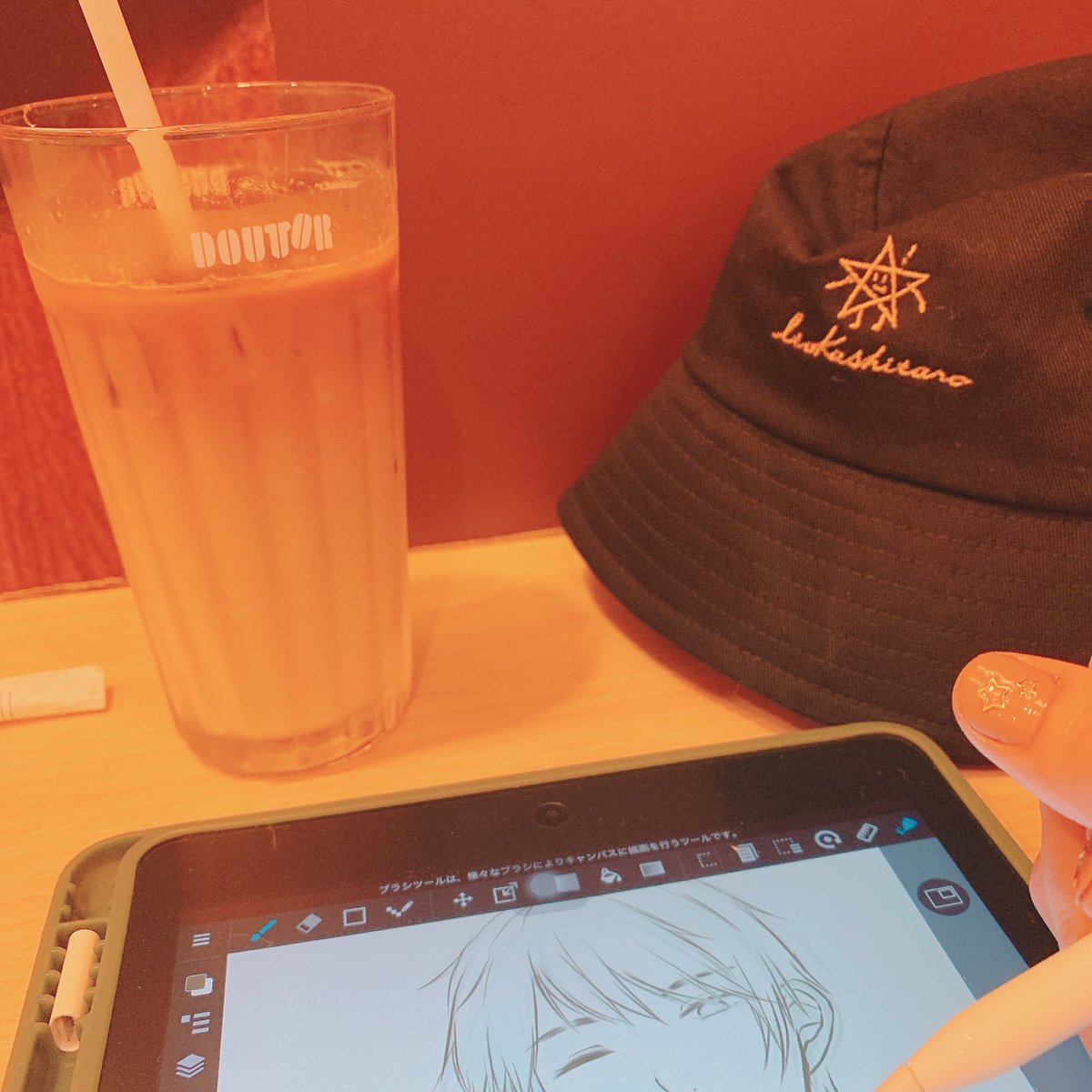 1 6 今日の目標:無理しない💪 物販は体力と相談して諦め そして暑すぎるのでドトールに避難…… 開場まで誕生日イラスト進めます 22/07/25 13:36