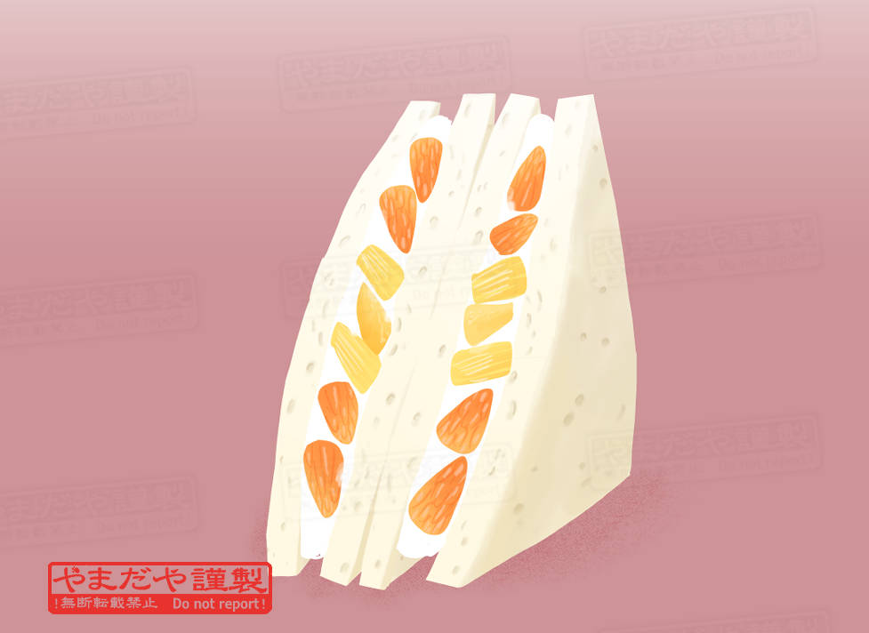 本日の厚塗り練習~ day65. はまの屋パーラー【フルーツサンド】ちなみに此れは1/4。 有楽町のレトロ喫茶店ですが後楽園駅にオープンしててビックリ! 一番人気のたまごサンドとハーフで頂きました。 #イラスト #フードイラスト twitter.com/m_k_yamada/sta…