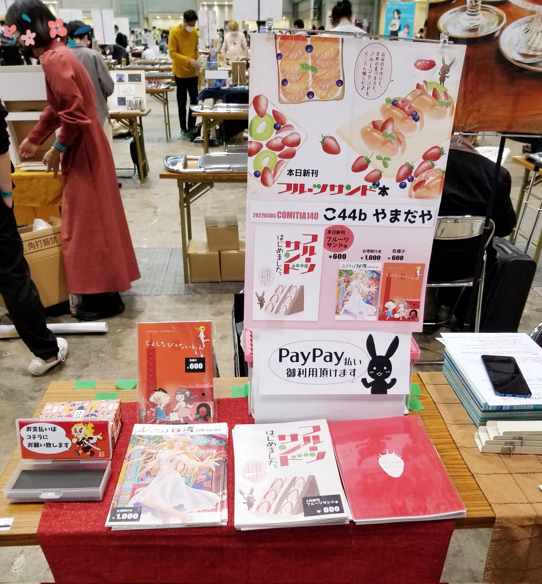 設営完了しました❗ 本日 #コミティア140 こ44bやまだや。 新刊フルーツサンド本と既刊の台湾旅行本ございますので宜しくお願い致します゚.+:。∩(・ω・)∩゚.+:。🌸 #COMITIA140