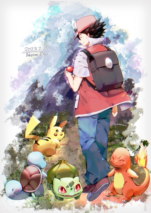 136 579 #PokemonDay #PokemonDay2023 おめでとうございます!!初代レッドくんたちでお祝い絵~!!!🥳🥳🙌 23/02/27 00:05