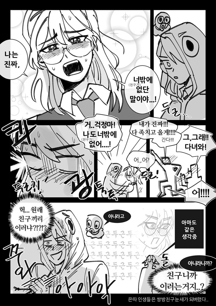 어글리후드 엘사줄리.. 약간 둘다 오랫동안 친구가 없어서 눈새가 되버린 느낌적 느낌 ~~ ~~ 둘이 오랫동안 친구라고 삽질하다가 나중에서야 자각하면 좋겠다,.,
