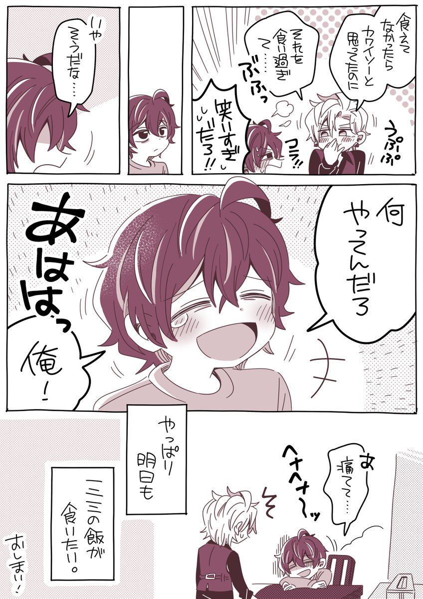 3/3 おわり ※🥂さんの嫌いな食べ物、冷凍食品だそうですが「市販の」と自己解釈してこの様に描きました🙇♀️