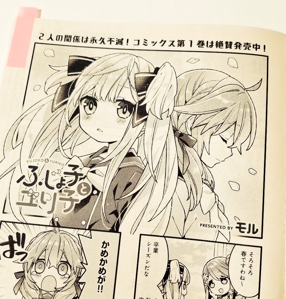まんがタイムきららキャラット6月号に「ふじょ子とユリ子」が掲載されてます。ついに最終話です。 最後のページが特に気に入ってます。コミックス第2巻は5月27日に発売です!よろしくお願いします!