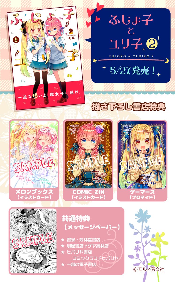 「ふじょ子とユリ子」第2巻が5月27日に発売します。書店特典をまとめたので是非ご利用下さい。描きたいのを描かせて貰ったのでどれも気に入ってます✌️どうぞよろしくお願いいたします~