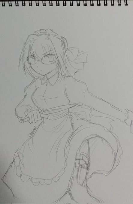今日はメイドの日ってことで描いてみたけど気が向いたら後から色塗ってみるかな……🎀 メイドといえば太ももの暗器(様式美)
