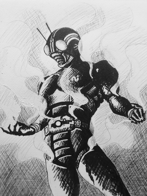 #世紀王ブラックサン を描きました。 テレビ『 #仮面ライダーBLACK 』より #仮面ライダー #仮面ライダーBLACK RX #特撮 #ペン画 #アナログ絵 #絵描きさんと繋がりたい #芸術同盟W #イラスト好きと繋がりたい