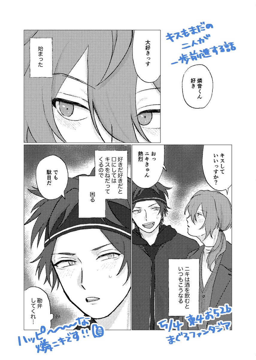 ハニキス(燐ニキWEBオンリー)で出した新刊の通販在庫が復活したのでサンプル載せます! 『南天』 全年齢 / A5 / 26P まだくっついてない燐ニキの故郷ifです。 自分の気持ちに自覚がある燐×自覚がないニ ちょっと長めのサンプル: pixiv.net/artworks/10652… 通販🐯: ecs.toranoana.jp/joshi/ec/item/…