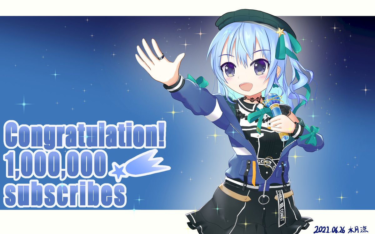 すいちゃん登録者数100万人おめでとうございますー!Blueroseにcomet配信、3ヶ月連続リリースも嬉しいです! | 水月涼 #pixiv pixiv.net/artworks/90820… #ほしまちぎゃらりー #ほしまちすたじお #星街すいせい