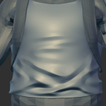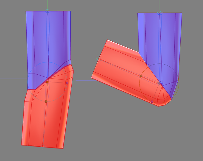 ポイントは、肘のまでを塊として曲がるように斜めにカットするところ。これは実際の人体の筋肉とスジが伸びる部分と同じ処理をすればいいのでは?と思ってやってみたらいい感じになった。 #3Dmodeling