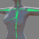 これはそう。時々、この中間ぐらいから鎖骨を生やしている方がいるのですが実際の鎖骨の位置から生やしてちゃんとウェイトを入れて肩から腕を上げれば補助ボーン無しの最小限の構造でもこのように綺麗に肩回りが稼働できます。 #VRoid #3DModeling #3DCG twitter.com/tarava777/stat…
