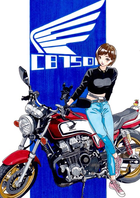やよさん@IyVsOWqf71XCWuP をモデルにバイクイラスト完成しました🫡🫡 作者の個人的に描きたいバイク!!ということでモデルさんになっていただきました😊💕 絵師@tdra08n_b #STEED400 #バイク女子 #バイク好きな人と繋がりたい
