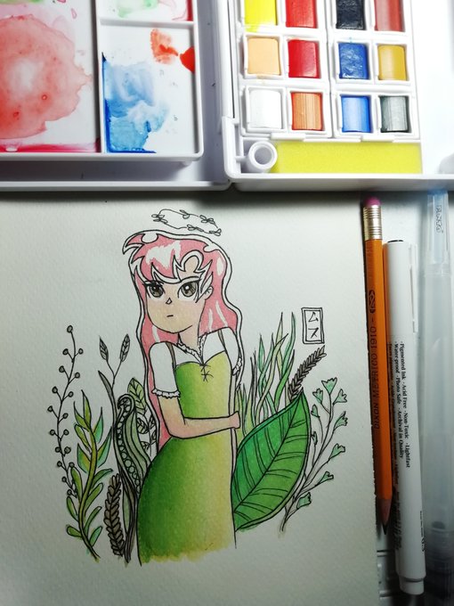 [ Dia 20 - Ninfa ] Okay, creo me acabo de enamorar de este dibujito ✨ #inktober #inktober2021 #art #watercolorpainting #ninfa #water