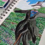[ Dia 5 - Scarecrow ] Habia olvidado subirlo aquí jejeje este fue mi dibujito de ayer 👉👈 #inktober #inktober2021 #Watercolor #art #scarecrow #Ghibli #dia5 #cabezadenabo