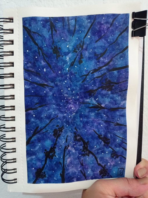 [ Día 11 - Night ] °°°°°°°°°°°°°°°°°°°°°°°°°°°° #inktober #inktober2021 #Watercolor #art #night #blue #purplecolor