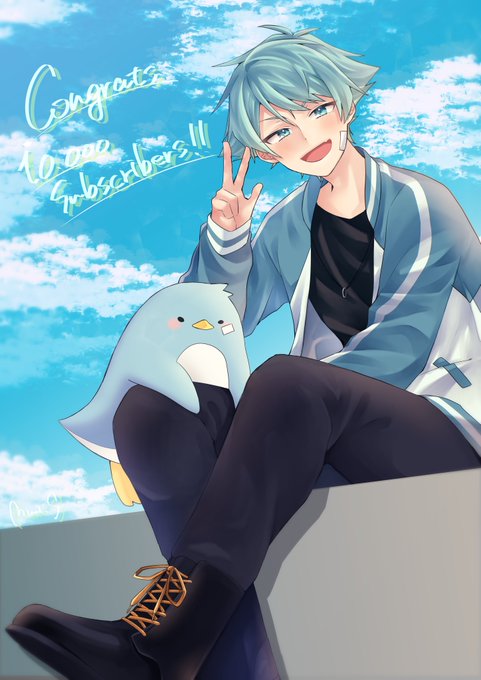 お祝い絵間に合わなかったので突貫で。 登録者数1万人おめでとうございます! スピード感すごかった。 #水凪る自由帳